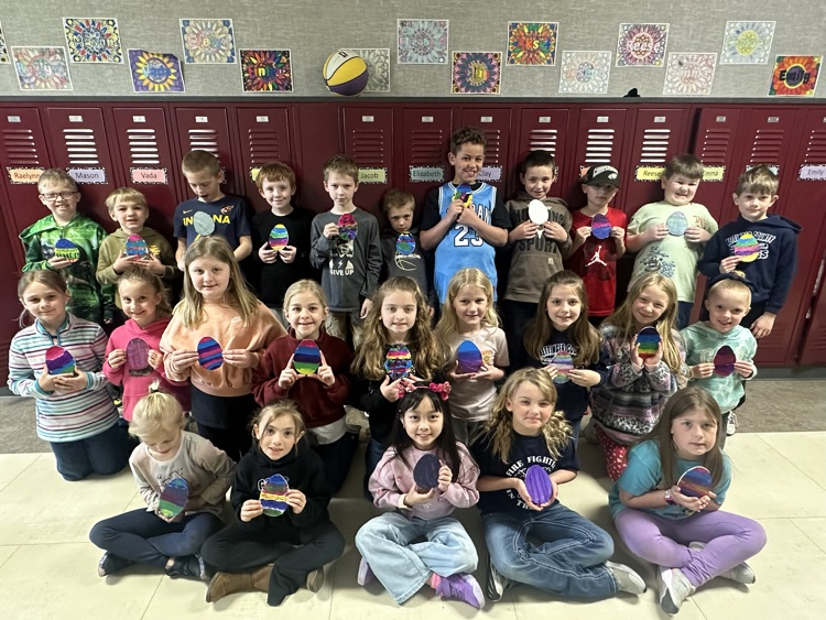 2nd Grade says thank you Rod and Ida Meier for the wooden egg cutout that each kid got to paint and take home for Easter! 🐣